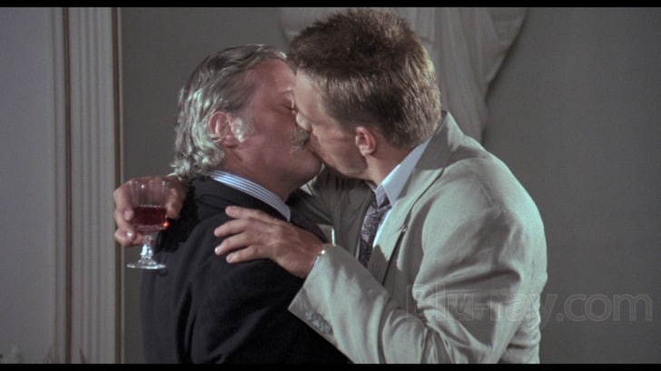 There follows lots of ultra-cheesy photo-shoots as the girls and their photographer (Thompson) pretend to blend in and try to gain intel about the man they’ve been assigned to take out – and I don’t mean for wine and pizza! Bartos takes a liking to them, invites the group out for dinner and makes lots of inappropriate advances towards anyone who’ll listen. After humiliating his girlfriend in front of Ryan, and then trying to turn the photographer on by flopping out said lady’s breasts, Ryan, in order to… mmm(?) diffuse the situation, snogs Bartos, which must be one of the weirdest, most cringe-inducing scenes in all of cinema history!