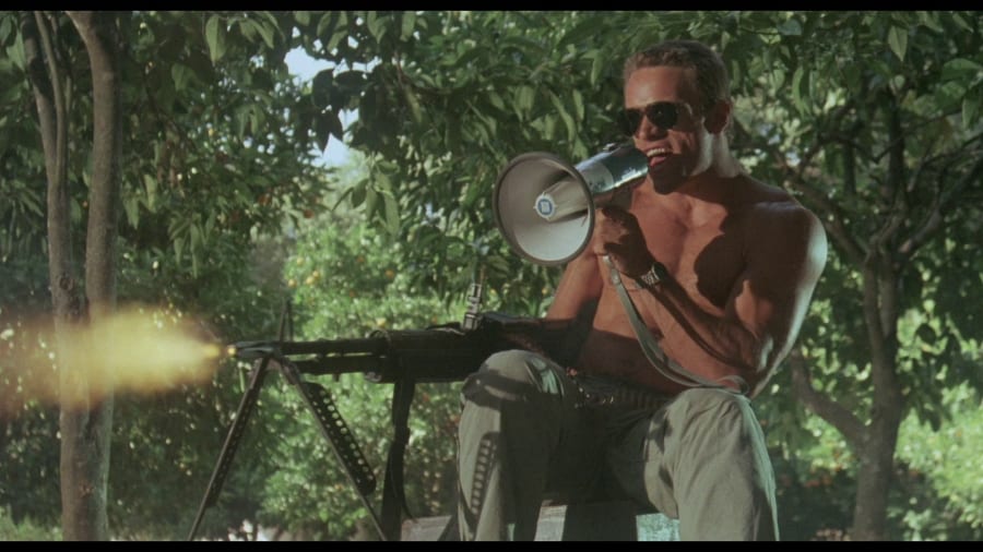 Undercover mercenary (17.5 mins) – an interview with lead actor, Brian Thompson, who talks about how he first got into acting, how he gets really nervous during auditions, how he had a role in The Terminator while he was still at college, and he shares his main memories of working on Hired to Kill – primarily that he doesn’t ever remember seeing Oliver Reed when he wasn’t drunk, and that his other main memory was of being surrounded by lots of topless women – sounds like a hard day at the office to me!