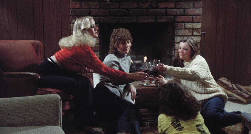 The bulk of the film takes place sometime later when two groups of tourists arrive at a Winter resort, each taking up short-term residency in a couple of holiday chalets. Two couples occupy one chalet and a group of girls the other, which is close by. As the film progresses, at a glacial speed, the couples have their ‘moments’ and the group of girls mess around a bit, with one of them trying to seduce one of the guys, but he remains loyal to his girlfriend so there’s not even a gratuitous sex scene!