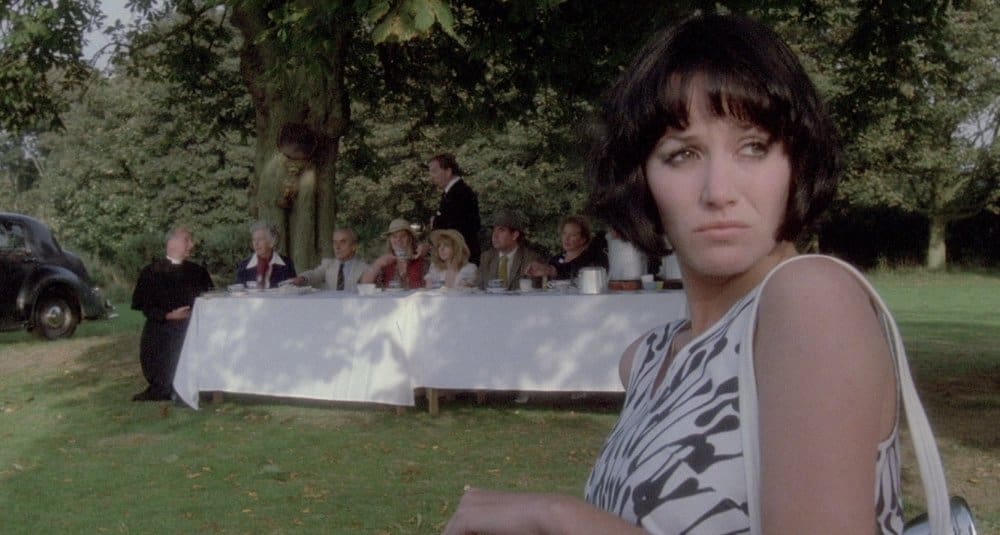 Set in an idyllic Kent village one balmy summer afternoon during the 1960s, the film begins with a telephone conversation between Pauline (Tracy Hyde) and Robins (Mark Hardy) during which he invites her to come and watch him play cricket in the country. She agrees, thinking she’ll have plenty of alone time with him, but after a quick snog and grope in the nearby apple orchard he runs back to the cricket match to resume play leaving his attractive new girlfriend to twiddle her thumbs.