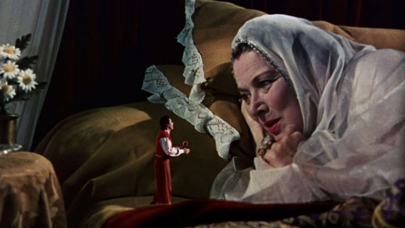 The majority of Harryhausen’s effects work here isn’t his usual stop motion creature animation, although there are probably more effects shots here than in any of his films. Instead he worked hard to create the illusion of size differences between Gulliver and the islanders. The integration of elements isn’t as slick as the green screen work we’re used to these days, but it still works and must have been mind-blowing at the time. A couple of excuses for Harryhausen’s stop motion expertise are included too as Gulliver is attacked by a couple of giant creatures in the second half of the film. The most impressive of these is a vicious crocodile he’s forced to do battle with. I doubt this scene was in Swift’s novel, but I certainly enjoyed it. Harryhausen’s work is also backed up by some wonderfully colourful cinematography and production design.