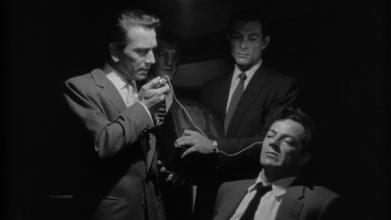 Another knockout aspect of the film is Conte’s portrayal of Brown, the chief villain. He’s frightening whilst rarely being physically aggressive. He often has a thin smile on his face as he reminds everyone of their place below him. He’s a truly despicable character, yet forever watchable. His chief goons, played by Brian Donlevy, Earl Holliman and a young Lee Van Cleef, are also well formed, with Donlevy providing a downtrodden ex-boss itching to get back to the top, whilst the other two are cold killers whose relationship has some not-so-subtle homosexual undertones. This last point, on top of a shot that strongly suggests Brown is giving Susan oral sex, show that The Big Combo was quite the boundary pusher at the time and some sequences still have the power to shock. A ‘torture by hearing aid’ scene stands out in particular, as well as a silent assassination featuring that same aid.