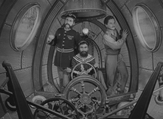 These political subtexts aren’t the main reason to praise and enjoy this wonderful film though. What impresses most is its style and design. Zeman wanted it to look like the illustrations in the early publications of Verne’s novels. To achieve this, as well as shooting in black and white, he added straight-line textures to every element of the film, mirroring the woodcut/woodblock printing style. This texture was added to the sets, backdrops and costumes, and lines were even added as an overlay to some of the few natural shots of water and such. The attention to detail is astounding and the result is a film that truly looks like an illustration from a 19th Century novel. Every frame is a work of art so, like The Fabulous Baron Munchausen, Invention for Destruction is an absolute feast for the eyes from start to finish.