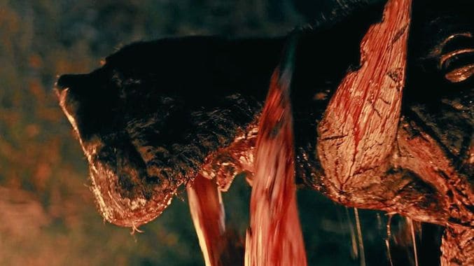 However, the script itself is pretty poor, which causes the pacing of the film to be uneven. For example, everything grinds to a halt part-way through while various characters chat in a local bar as a ‘bar stool guy’ recollects his own ‘big pig’ encounter. But all that matters not a lot when the film’s core audience will just want to see a huge pig tearing lots of annoying people apart and Boar really delivers on this with a number of gory deaths scattered liberally throughout the movie’s runtime. Unfortunately, some of the acting on display comes across as being a little amateur, which doesn’t help matters, although, fortunately, Chris Sun has the good sense to use the poorer actors sparingly.