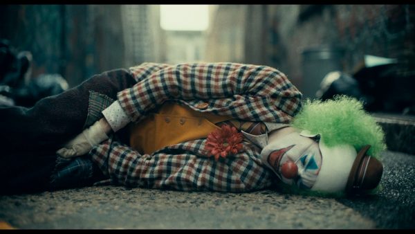 One thing we know about the Joker in the history of the comics and films, is that he would not take a beating from teenagers like that and curl up upset from it. We see a change later on in the trailer where he is beaten up again, but this time he is laughing. He is wearing the same costume in both attacks, so it will be interesting if the train attack is the later of the two on the same day. Has he cracked because of the first attack and is laughing manically on the the train because of it and when the others come for him he reacts differently. I have the feeling he is reeling those people on the train to attack him, as we know the Joker, even in his early infancy would have a plan if he was attacked again. But let’s focus on the first attack, is he curled up because he is afraid? Or is it because he is trying to control his emotions from getting out? Either way this is another knock to his self-esteem and mental state. Bit by bit he is being chipped away from the Arthur he knew himself to be. It will be said everywhere but the shot choices throughout this trailer and expectantly the film are gorgeous. The slow pull out and focus onto him is great.