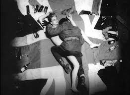 This is Jarman’s film representation of Thatcher’s England, given a gay twist; queer is where love and hope are to be found. For Jarman it would seem opportunities of subversive and queer sexual encounters are a source of the sublime. Sinister footage of corporate monolith architecture is interspersed with nostalgic scenes taken from what would seem to be a super 8 archive of fond scenes of a family life in the 1950s. But is the image of ideal nuclear family now an oppressive lie? Recurring imagery of fires burning, the river Thames, industrial sites, a gathering of vagrants, the underclass. It’s clearly an unstructured approach to film making, where the narrative is sorted out in the editing. Is this a future fascist state? Music used in the soundtrack is by amongst others, Simon Fisher Turner, Barry Adamson, Andy Gill, Marion Faithful, and Diamanda Galas. Although the film was to all intensive purposes a flop when released in the cinema, in retrospect it seems to sum up a feeling of anger and frustration that was present at the time.