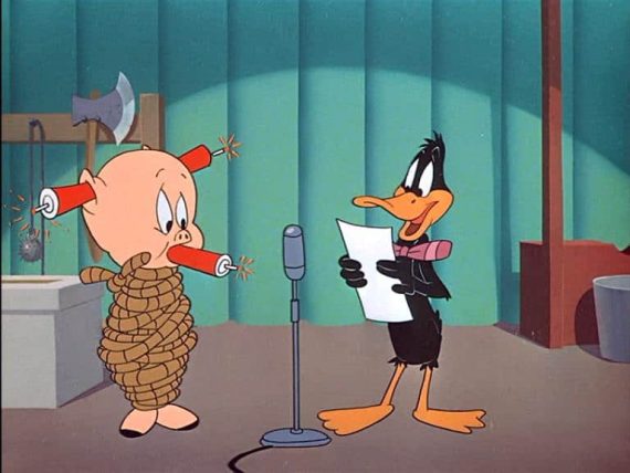 Since I first saw it at a very young age, I’ve always found Chuck Jones’s The Ducksters to be one of the funniest cartoons I’ve ever seen. This is largely due to Michael Maltese’s hilarious script but, as always, Jones displays extraordinary timing in bringing it to the screen. A spoof of radio quiz shows, The Ducksters is a deliciously sadistic film in which Daffy Duck’s host terrorizes Porky Pig’s contestant with impossible questions and horrendously violent penalties. The timing of both the verbal and physical antics is impeccable, leading up to a thoroughly satisfying finale with the iris closing on a fantastic climactic Daffy line. Rarely discussed or praised, The Ducksters is a childhood favourite of mine and a cartoon very dear to my heart. It’s both rib-ticklingly witty and delightfully violent, which just about amounts to the perfect combination for this cartoon fanatic!