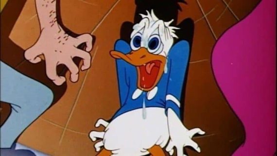 Jack Kinney’s Duck Pimples is one of the most remarkable Donald Duck cartoons Disney ever produced. Beginning with Donald scaring himself silly with a series of radio shows, the short then enters extremely surreal territory as an intimidating book salesman leaves a pile of mystery books in Donald’s house (prior to disappearing into thin air) and Donald imagines a whole crime thriller plot right before his eyes, complete with an aggressive Irish cop, am opportunistic femme fatale and a set of missing jewels. One of the elements of Duck Pimples that has fascinated many is the fact that Donald, so forceful and vivid a character, is apparently side-lined by the other goings-on in the cartoon. He appears to be a punching-bag for the stereotypical film noir players. However, I would argue that, far from side-lining Donald, Duck Pimples is entirely about him, given that everything and everyone in the whole film seems to be a product of his overactive imagination. Just as Donald’s temper is an uncontrollable beast in many cartoons, so his vulnerable side is just as extreme, with the merest of suggestions triggering an entire murder-mystery scenario in his brain, so vivid that it manifests itself before our (and his) very eyes. Duck Pimples carefully ensures that nothing is completely certain, so that maybe this whole thing really did occur outside of Donald’s tightly-wound brain, and that makes it as troubling as it is funny. Whatever you make of this unique little short, it’s truly a one off and it expands greatly upon the complex character that is Donald Duck.