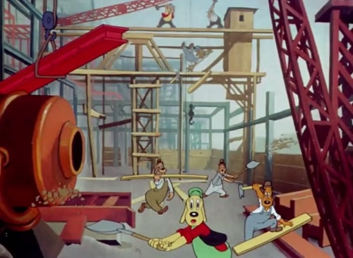 Friz Freleng was a master at directing cartoons set to music and one of his most brilliant creations in this category was the Oscar nominated Rhapsody in Rivets, in which he beautifully synchronises the construction of a skyscraper with Liszt’s composition ‘Hungarian Rhapsody Number 2’. This particular piece of music was to become a ubiquitous cartoon soundtrack. While this was its first use on a Warner Bros. short, it had previously been used in Disney, Columbia and Fleischer cartoons and would go on to appear in many further animated films, most notably the famous Tom and Jerry Oscar winner The Cat Concerto. The importance of this piece of music to animation was acknowledged when its ubiquity was paid tribute in Who Framed Roger Rabbit, when Donald and Daffy Duck teamed up to perform a chaotic piano duet. It was Rhapsody in Rivets, however, that first established just how effectively the Hungarian Rhapsody could dictate animated action.