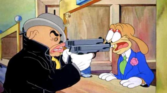 Tex Avery’s Thugs With Dirty Mugs is one of the director’s great classics. Though less discussed than many of Avery’s pictures, Thugs With Dirty Mugs is a masterclass in parody and the visual gag. In fact, there are so many extraordinarily inventive and original sight gags on offer here that you can’t quite believe Avery packs them all into seven minutes. The main concept of the cartoon is a parody of all those great Warner Bros. crime movies of the time (the main villain is a caricature of Edward G. Robinson) and this is observed wonderfully but instead of focusing on plot, Thugs With Dirty Mugs quickly establishes itself as a series of spot gags with a loose cops and robbers through-line. Spot gag cartoons can sometimes be slow moving or hit and miss but Thugs With Dirty Mugs has a ridiculously high hit rate and moves at such a lick that the few misses barely register. I don’t want to spoil any of the gags by describing them here but Thugs With Dirty Mugs features one of the best and silliest sight gags in history. Just listen out for the phrase “Take that you rat” and you’ll see what I mean. One of the all-out funniest shorts in the entire Warner library, Thugs With Dirty Mugs is a classic which fans of gangster films should make the effort to see.