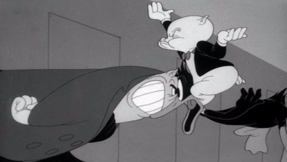 Frank Tashlin’s Porky Pig’s Feat is an exceptionally handsome black and white cartoon. Trapped in a hotel with a bill they can’t pay, Porky Pig and Daffy Duck attempt to rid themselves of the fearsome manager and escape. It’s a simple set up for a fast paced and very funny short. There are several things that make Porky Pig’s Feat notable besides its general excellence. The drawing and animation style have an unusually modern feel to them for 1943 and the camera angles and set-ups have a really cinematic look. Witness Daffy’s wild rush down the corridor and into the elevator or Porky and Daffy as they swing on a rope made of sheets from the hotel window. Perhaps the most notable element, however, is a last minute cameo from (a rather odd sounding) Bugs Bunny who makes his only appearance in black and white and his first appearance alongside Porky and Daffy. Although it was still early in Bugs’ career, he had already outshone all the studio’s previous stars in terms of popularity and this is reflected in Porky and Daffy’s hero worship of him. It’s slightly odd to hear Daffy proclaiming that Bugs is his hero in light of their more famous rivalry developed by Chuck Jones in later years. All these unusual elements help make Porky Pig’s Feat a classic but, crucially, it also has a great script and a wonderful energy that drives it forward until its surprise ending. One of Tashlin’s best films.
