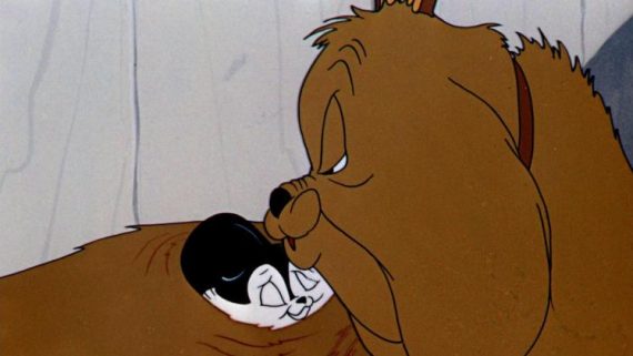 Much has been made of the facial expressions Jones coaxes out of his characters and Feed the Kitty is the prime example of his genius with a reaction. Marc Anthony snaps instantaneously from ferocious to confused to adoring to desperate to stern to relieved etc. The saggy, bloodshot look of total devastation that he adopts when he believes Pussyfoot has been killed is the most jaw-dropping element of Feed the Kitty. It is so heart-wrenchingly accurate in its depiction of a soul who has lost all hope that it is simultaneously unbearably sad and hilarious in its extremity. It’s unlike any expression you’ve seen in a cartoon before and writer Mike Maltese pushes this grim gag one step further when he has Marc Anthony take the freshly baked effigy of his beloved pet and place it lovingly on his back. Of course, this deeply sad material is also very, very funny because the audience is in on the joke and knows that Pussyfoot is OK and we are rewarded with a happy ending. The cartoon ends on a quiet note instead of the usual crash of an anvil or straight to camera wisecrack, further highlighting what an unusual piece of work Feed the Kitty is. Jones used Marc Anthony and Pussyfoot in several other shorts but never to such incredible effect as in this classic treasure of a film.