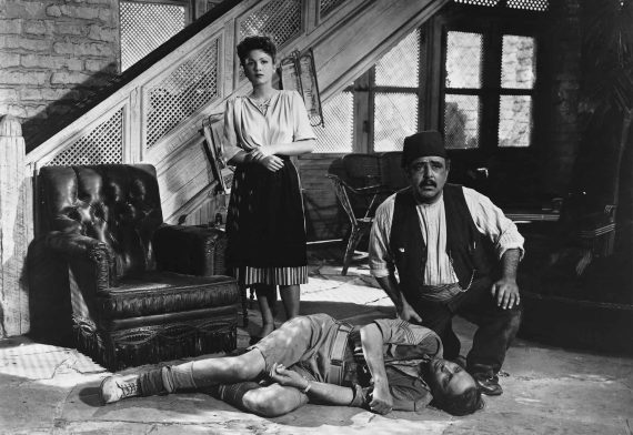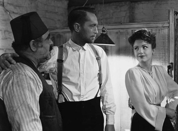 He comes across the Empress of Britain, a small hotel out in the middle of nowhere owned by Farid (Akim Tamiroff). Sunstroke has impaired the Corporal’s senses and he stumbles in, talking to invisible captains and generals, believing he’s walked into base. Farid and maid Mouche (Anne Baxter) get him some water and lay him down, but the hotel is swiftly taken over by a troop of German soldiers, led initially by Lt. Schwegler (Peter van Eyck). He manages to evade them, aided by Farid, before he comes to and hides in a desk compartment, then sneaks out of the room.
