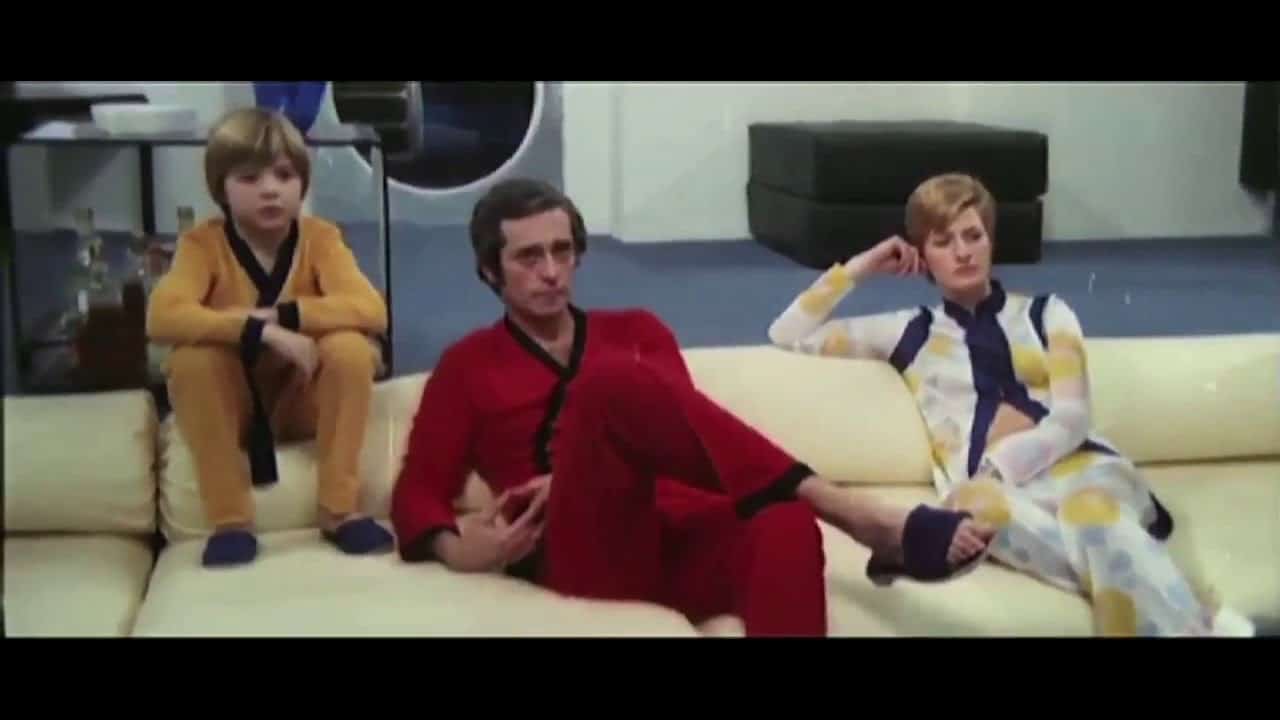As with the later Robocop and Starship Troopers, Clockwork Terror uses satirical commercials to further flavour the future world its story is set in, although these are nowhere as good or as witty as the other films’ ads. This is a world full of ‘Panther pants’ (which apparently enhance one’s virility), blue coloured drinks, jazzed-up mini-moke buggies and pyjamas that are more like karate gis.