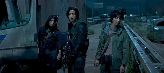 Instead the makers focus more on setting up the various motivations of all the interconnecting characters and then wasting it all on several mammoth CGI car chases! Yep, it all goes a little Fast & Furious as the bulk of the action is taken up with CGI enhanced vehicular mayhem. While ambitious and creative (and to a point needed to create sustained chases through a derelict Korea) the CGI unfortunately takes one out of the film somewhat and feels more akin to watching a video game than a well mounted zombie-action flick. The first film used (lack of) space, practical effects and Dong-seok Ma using his fists to stage better tensed filled action than any amount of CGI. It’s a shame as there’s no doubting the ambition but the film works better in its smaller scaled, practical action such as when Jung Seok takes on zombies with a machine gun or the eye-boggling rat-king-zombie-brawl sequence.