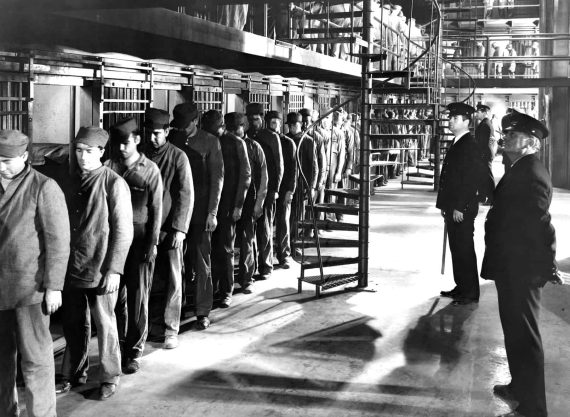 The Criminal Code’s theatrical origins mean that it is restricted to only a half dozen locations or so. Yet what could have been stuffy and dry is transformed by Hawks’ hand (along with not one, but two cinematographers) into a consistently engaging visual experience. Two sequences utilising overlapping dissolves (skills no doubt recalled from his silent film work) are particular standouts. The prison where the majority of the film is set is captured with an authentic sense of scale and place; scenes in the prison yard are particularly impressive, not just for their scope but for the atmosphere they evoke, with Hawks using many actual ex-cons as extras.
