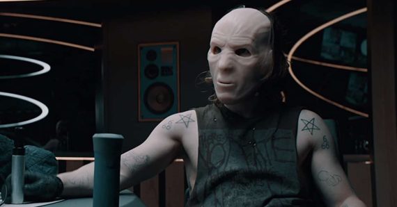 Feedback begins as it means to go on, opening with a combative scene set in the office of radio station owner Norman (a cameo from Anthony Head). Norman is forcing Jarvis (Eddie Marsan) a popular late night talk show host, to team up once more with Andrew (Paul Anderson) his boorish former presenting partner. After finally conceding, Jarvis begins his nightly show. When his Producer suddenly vanishes while Jarvis is live on air, he soon realises that the studio has been taken hostage by men wearing unnerving, flesh coloured masks. They have clearly come prepared to cause trouble. Wielding both shotguns and sledgehammers, they let Jarvis know that they are not going to let him leave until he admits live on air to a dark truth about his past…Â