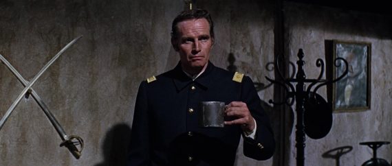 Major Dundee is out on 28th June on Limited Edition Blu-ray, released by Arrow Video. You can order it directly from the Arrow store here. With regards to the picture quality, detail and sharpness is a little hit and miss, though I think it’s standard for exterior shots in films of the period to look a little soft. Interior close-ups largely look great. I found the contrast levels a little high though, with strong blacks shrouding some of the detail. There’s an earlier re-release trailer from 2005 on the disc and, though not quite as cleaned up as the feature transfer here, I actually preferred the contrast in this, as it allows for a higher dynamic range and greater detail.