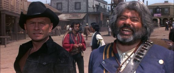Despite the Mexican Revolution backdrop, this is another comic-book style romp with a high body count and plenty of fancy sharp-shooting and gimmicks (check out the guy who slings metal pellets at his enemies using his foot!). The camp factor is ramped up a lot here too, not only in Brynner’s tasselled and chest-baring outfit but in bizarre touches like the “flamenco of death” that’s danced before Escudo executes traitors to the cause. There’s even a scene where Sabata and Ballantine butt heads over their piano skills and end up playing a duet together!