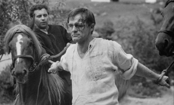 It’s the use of music and sound design that truly push this style into avant-garde territory though. The largely atonal score, which often uses voices as instruments, creates a thick, unsettling atmosphere. The sound design merges with this, frequently using the disembodied mutterings and whisperings of the conspiring villagers to further the sense of unease. Particular sounds are accentuated and sometimes dropped out too. For instance, during the cattle drive, at one point we only hear the musical clatter of the cowbells but not the cracks of Dragon and Šimon’s whips.