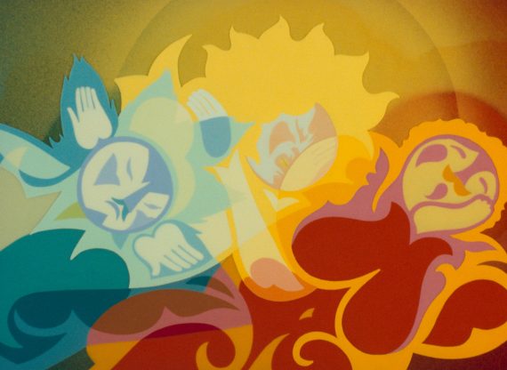 For one, the visual style is even more mind-blowing. The character and background designs are more unique, often avant-garde in look and less indebted to Yellow Submarine. Colours are strikingly well used and there’s a beautiful use of shapes, movements and symbolism from the natural world. The dragons have a notably darker, less appealing man-made look, with one seemingly inspired by early digital imagery.