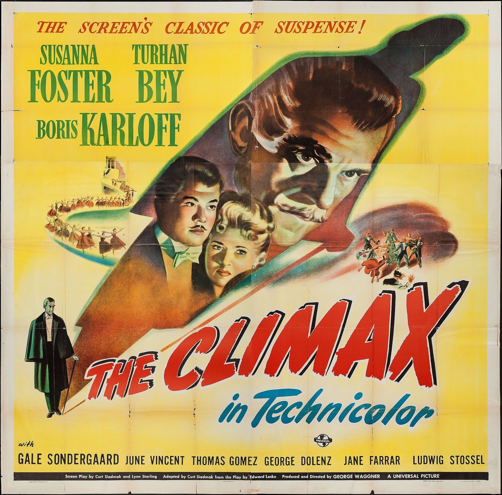 Certainly the most sumptuous film production in this boxed set, The Climax was obviously a prestige production for Universal, what with it being shot in colour and it utilising impressive sets and large scale operatic musical numbers. In fact, the musical numbers, while impressive in their own right, tend to dominate the film and hence slow the pacing down, making this probably the least satisfying film of the three, at least by my humble reckoning.