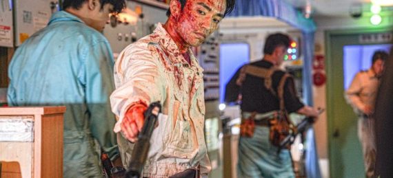 To say anymore would spoil the unrelenting and shocking surprises that unfold as the tanker is turned into a floating hell by an unstoppable killing machine that targets both cops and criminals. A streamlined narrative is basically an excuse for the makers to let rip (literally!) with an increasing amount of creative and elaborately violent set-pieces as the blood drenched monster soldier cuts his way through the cast. It’s intense stuff as once the carnage erupts it barely lets up and writer/director Hongsun Kim (The Chase, Metamorphosis) seems to be on a mission to keep audiences jaws constantly agape at the sheer amount of violence inflicted upon the characters. And everyone is fair game meaning it’s not always clear who will make it. Knifes, hammers and even severed limbs are used as weapons and there are even several scenes of intense firepower based action as the cops and crims face off and then turn their attention to trying to stop the rampaging super soldier in any way they can.
