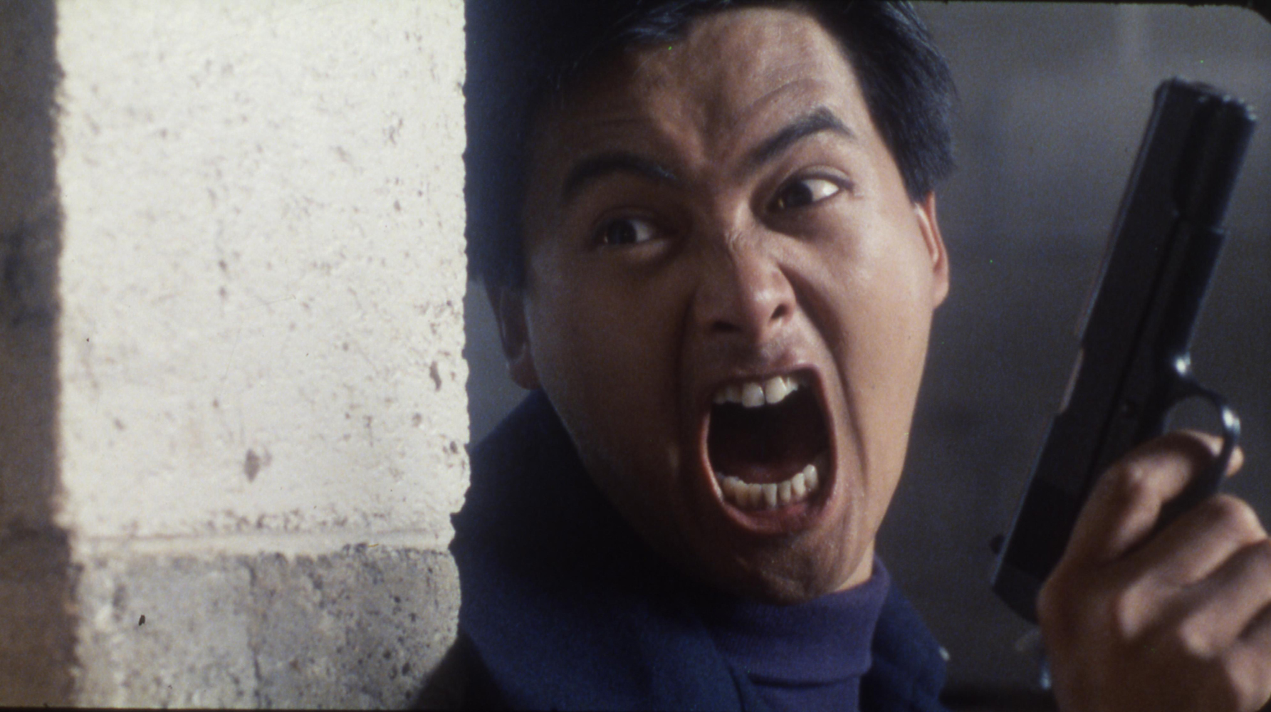 The film then jumps forward 20 years and we can see that Yan has now grown up to be an air force pilot, albeit one who is something of a maverick, regularly disobeying orders. He goes further off into the ‘deep end’ when he reads a newspaper article which reveals that his parents’ killer is temporarily in the country, being celebrated as a successful businessman, even though that business is in arms dealing. It’s all too much for our hero and he decides to seek revenge and kill Ray. However, things don’t work out as planed and during the gala diner he misses his chance to kill his nemesis and instead his friend/step brother is taken prisoner, tortured and killed. Fortunately Yan’s helped by the lovely Mona (Rosamund Kwan), who is Ray Lui’s concubine and general sex slave, to hide and escape.