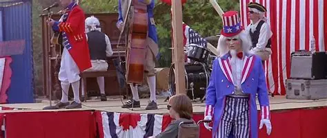 Sam’s funeral is set for around July 4th when a number of historical symbols come to the fore, including people dressed up as the national icon of Uncle Sam, who was previously used as a motivator to encourage younger people to join the armed forces and do the right thing for America. When Jodie unlocks the casket containing the body, it enables the decomposing corpse of Sam to rise up and begin righting wrongs, which mostly takes the form of punishing any sort of anti-patriotism. Cue some fun killings of a variety of people who have committed actions or have a mind-set that the now undead Sam believes to be unpatriotic.