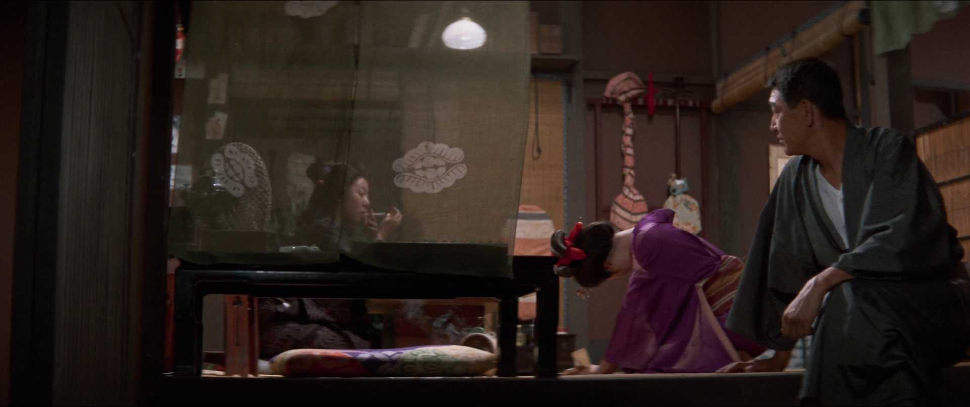 Katô shoots with his usual keen eye for interesting compositions, as well as a great use of depth and screens. Colour is put to good use here too and there are a couple of effective ‘needle drops’ throughout the film.