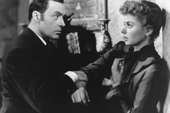 Cukor’s first major asset is the extra 25 minutes of runtime, which allows the story to be told far more effectively. Dickinson’s film plunges us straight into his heroine’s nightmare at the hands of her tormentor, whereas Cukor allows us to see the developing romance between Gregory and Paula, establishing the glimpse of possible happiness that ultimately traps Paula in her mental captivity. This allows us to warm to the characters before the emotional bombshells are dropped, rather than just relying on our basic natural humanity from the outset. The second great asset in Cukor’s Gaslight is the higher budget, allowing for the Oscar-winning art direction and Oscar-nominated cinematography to create a crucial atmosphere that was only hinted at in the earlier, cheaper British production. This is a world of eerie shadows and teasingly flickering gaslights, a scintillating snapshot of a mythical bygone London with a hefty helping of 40s noir relish. But the greatest trump card of all in Cukor’s Gaslight, and the worst stumbling block in Dickinson’s, is the leading lady. As a woman trapped on the precipice of mental collapse by the machinations of her manipulator, Diana Wynyard struggles to convince with her main acting tool being a wide-eyed faraway stare. But Ingrid Bergman is note-perfect in her Oscar-winning turn. While Wynyard attends to show us a woman broken by mental abuse, Bergman drags us down with her into the terrifying depths of self-doubt and fear. Boyer is entertainingly malevolent as her husband but it is Bergman’s reactions to his torments that make their exchanges so genuinely frightening. It’s one of the finest performances Cukor ever drew out of one of his actors.